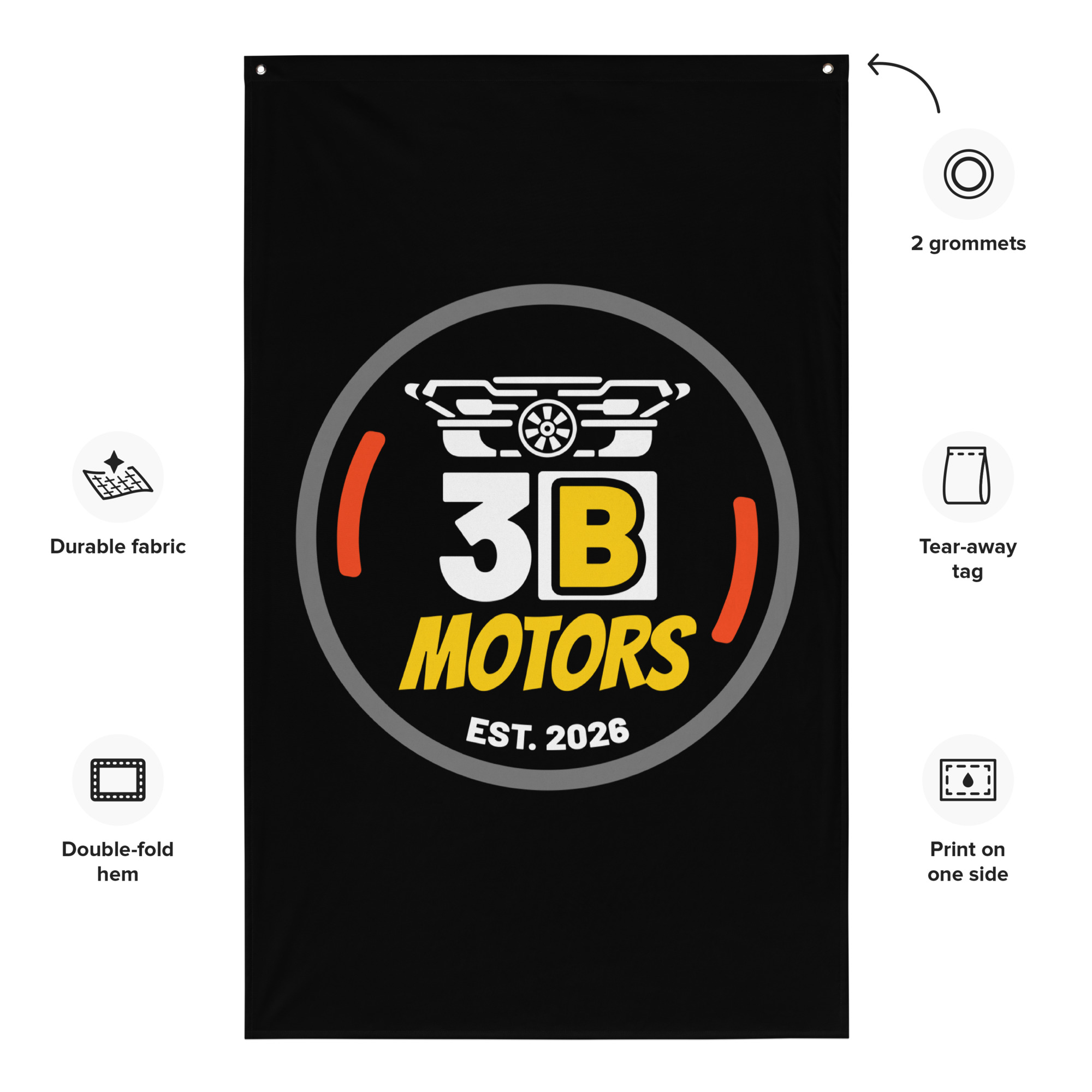 Level up your garage or work space by adding this unique 3B Motors flag to your wall. Your flag won’t crease or shrink thanks to the polyester material and will last a long time.